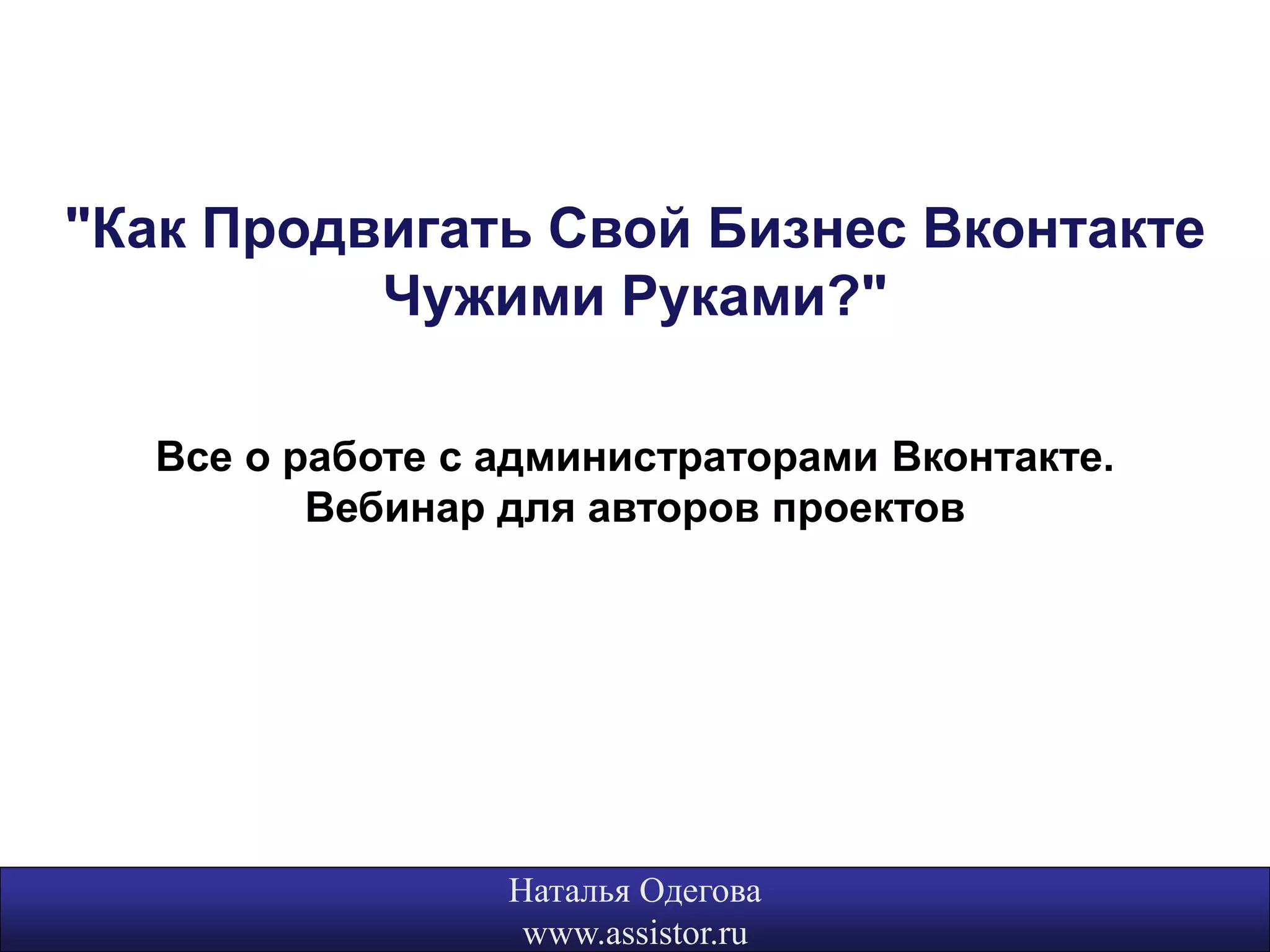 Документ представляет собой вебинар, посвященный продвижению бизнеса в социальной сети ВКонтакте с помощью администраторов. В нем рассматриваются задачи, которые работодатели хотят решить через соцсети, а также конкретные навыки, которые должны иметь администраторы, включая организацию трафика и восприятие информации. Также упоминается стоимость услуг администраторов и пути обучения для желающих стать профессионалами в этой области.