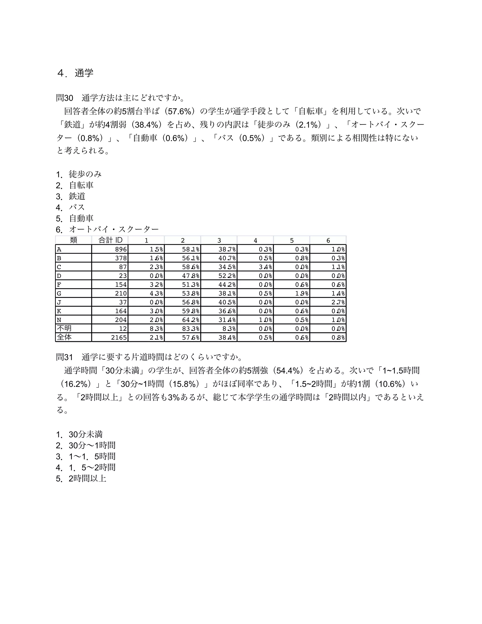 The document contains data presented in tables and charts. The first table shows that 57.6% of respondents chose 5 on a scale, with lower percentages for other options. The second table shows that 54.4% of responses were between 1-1.5 on another scale, with lower percentages in other ranges. The third chart shows the percentage breakdown of responses across 7 categories.