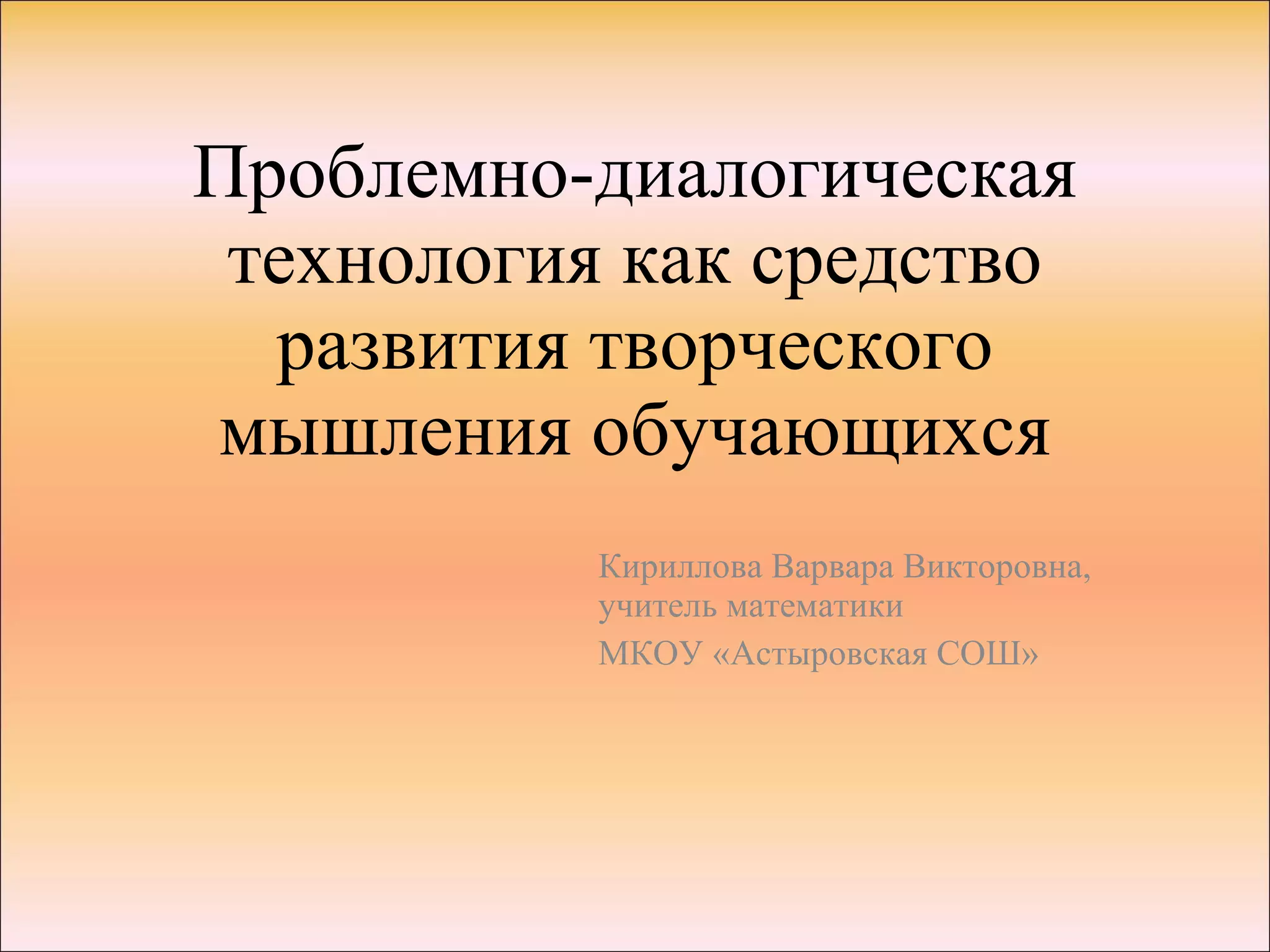 Документ описывает использование проблемно-диалогической технологии в обучении математике для развития творческого мышления учащихся. Основные цели включают определение уровня мотивации, анализ сущности проблемного обучения и реализацию этой методики на уроках. Включены примеры создания проблемных ситуаций и методы их решения для повышения вовлеченности и критического мышления студентов.