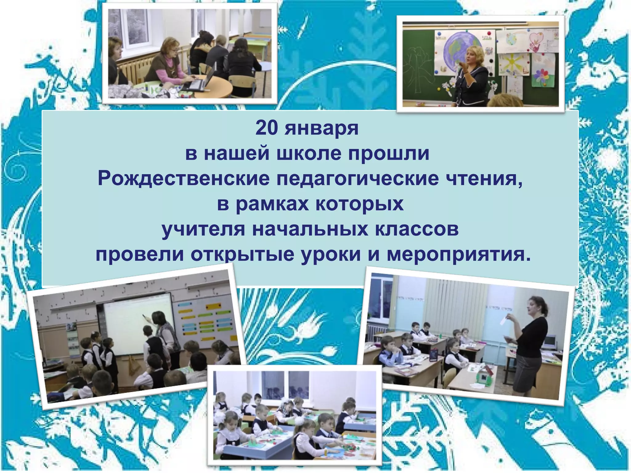 20 января 2012 года в школе прошли рождественские педагогические чтения, на которых учителя провели открытые уроки и мероприятия по различным предметам. В программе были уроки по окружающему миру, технологии, английскому языку, а также классы и мастер-классы, направленные на духовно-нравственное воспитание. Также состоялось торжественное мероприятие, посвященное 65-летию системы общего образования в пионерском городском округе.
