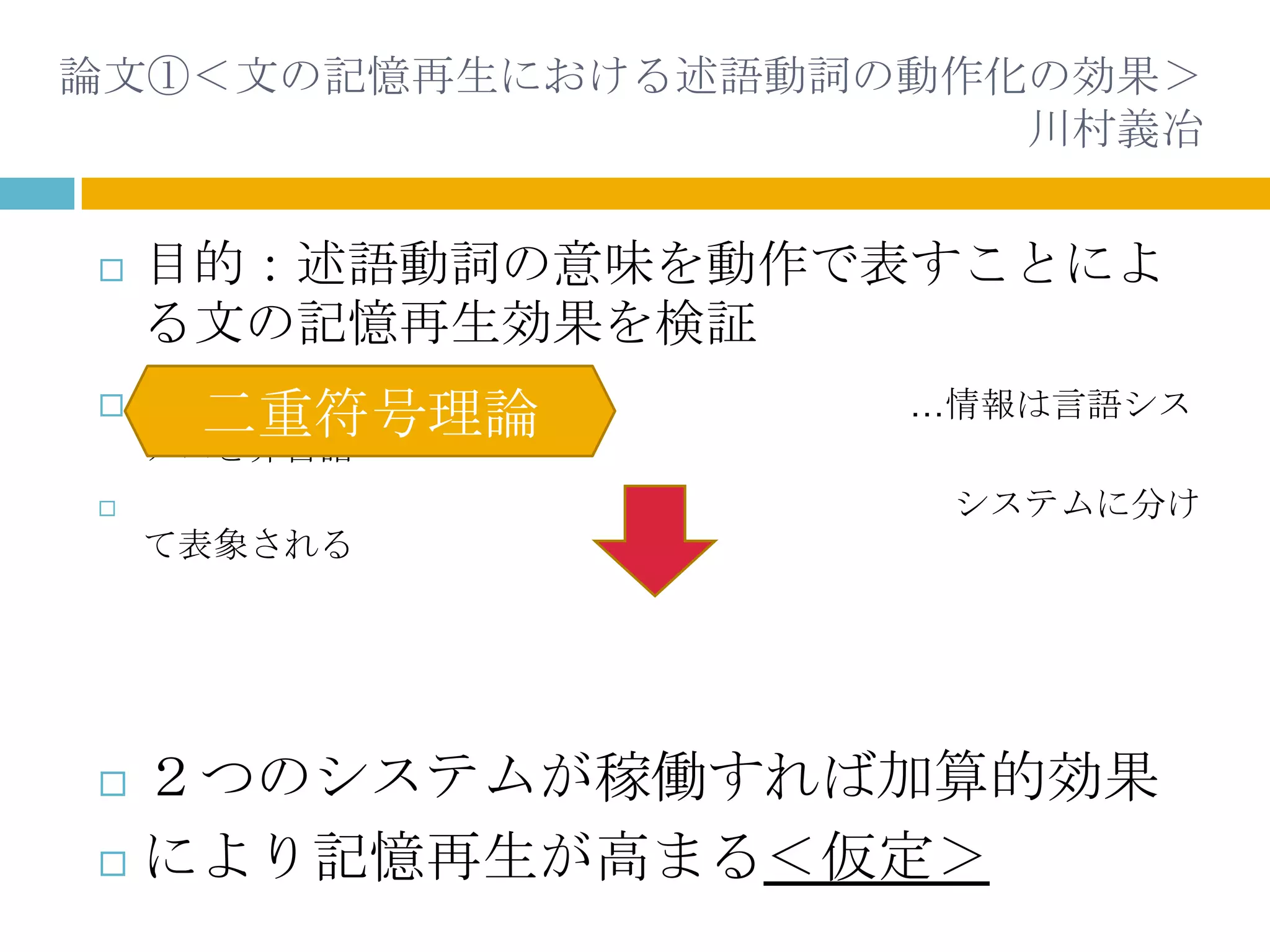 論文①<文の記憶再生における述語動詞の動作化の効果>