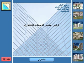 يتناول كراس معايير الإسكان الحضاري في العراق المهام والاختصاصات التي تقوم بها الهيئة العامة للإسكان بهدف تحسين الظروف السكنية وتنظيم التجمعات السكنية. كما يقدم المعايير التخطيطية والتصميمية الضرورية لتخطيط وتصميم المجمعات السكنية بما يتماشى مع الاحتياجات الاجتماعية والاقتصادية للمواطنين. ويساهم الكراس في تحديد الأمور المتعلقة بكثافة المساكن والمسافات بين الوحدات السكنية والخدمات الاجتماعية.