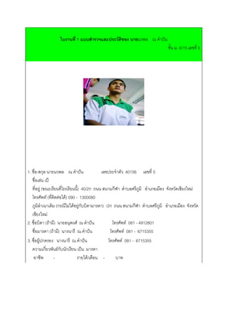 ใบงานที่ 1 แบบสารวจและประวัติของ