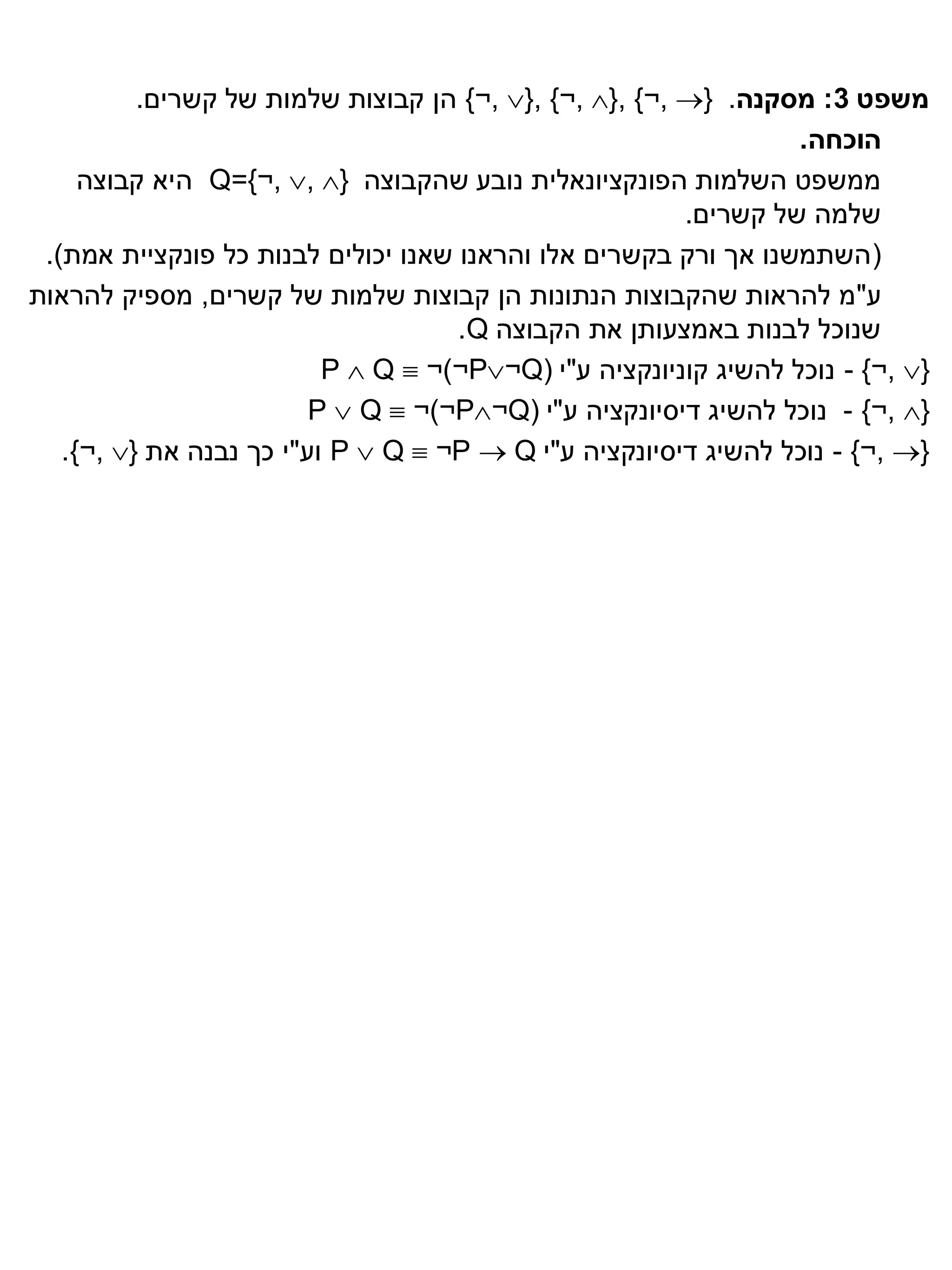 ( השתמשנו אך ורק בקשרים אלו והראנו שאנו יכולים לבנות כל פונקציית אמת).