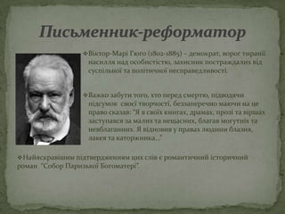 Віктор-Марі Гюго(1802-1885) – демократ, ворог тиранії