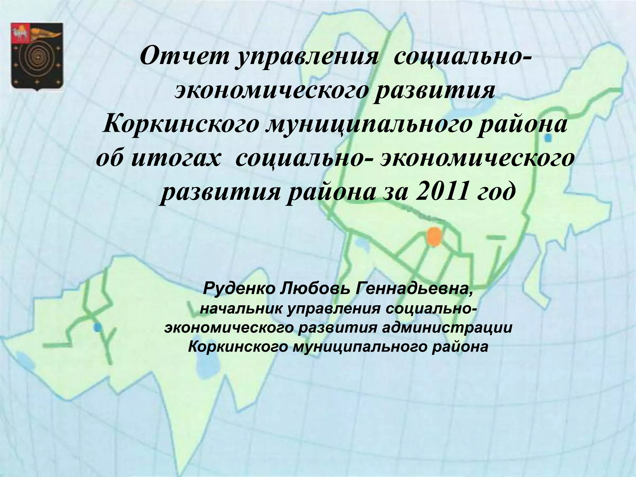 Документ представляет собой отчет о социально-экономическом развитии коркинского муниципального района за 2011 год. В нем содержится статистика по объемам отгруженной продукции, уровню промышленного производства, средней заработной плате и количеству малых предприятий. Отчет также включает данные о безработице и погашенной задолженности по налогам.