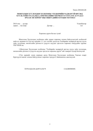 Төлбөрийн чадваргүй иргэдэд хууль зүйн туслалцаа, өмгөөллийн үйлчилгээ үзүүлэх асуудал эрхэлсэн хорооны дүрмийн төсөл