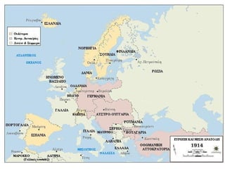 Α΄ ΠΑΓΚΟΣΜΙΟΣ ΠΟΛΕΜΟΣΟ Α΄ Παγκόσμιος Πόλεμος, επίσης γνωστός ως ο Μεγάλος Πόλεμος όπως λεγόταν πριν το ξέσπασμα του Δεύτερου Πολέμου, ήταν μια γενικευμένη σύγκρουση των Ευρωπαϊκών Δυνάμεων που διήρκεσε από τον Αύγουστο του 1914 ως τις 11 Νοεμβρίου 1918.