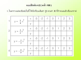 1. ในตารางแต่ละข้อต่อไปนี้ ให้นักเรียนเติมค่า y ตามค่า x ที่กาหนดแล้วเขียนกราฟ