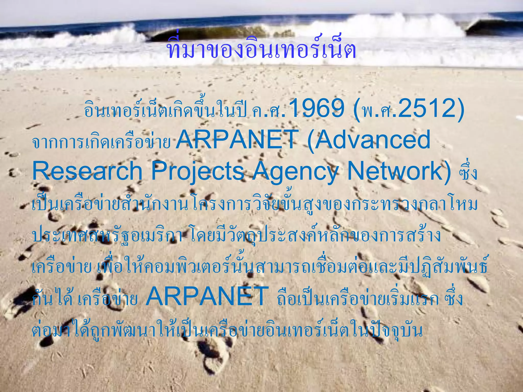 กันได้ เครือข่าย ARPANET ถือเป็นเครือข่ายเริ่มแรก ซึ่ง