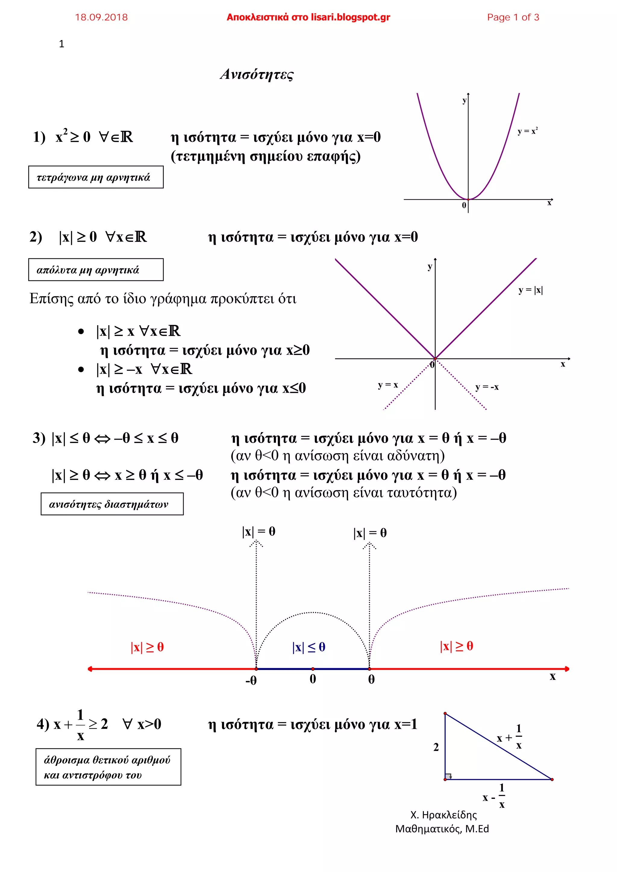 2) |x| 0 x' η ισότητα = ισχύει μόνο για x=0