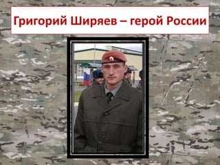 Документ посвящен капитану Григорию Ширяеву, герою России, который получил это звание за мужество и подвиг в бою на Кавказе. Ширяев, сражавшийся более чем в 50 боях, погиб 4 февраля 2010 года, прикрывая других солдат во время нападения боевиков. В документе также отмечаются его достижения и память о погибших героях.