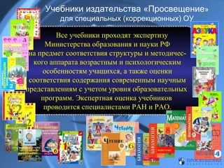 Документ описывает учебники и учебно-методическую литературу по коррекционной педагогике, изданные «Просвещением», которые проходят экспертизу на соответствие требованиям министерства образования и науки РФ. Специализированные учебники для различных типов коррекционных учреждений проходят оценку на соответствие возрастным и психологическим особенностям учащихся. Издательство ежегодно пополняет федеральный перечень рекомендованных учебников, что способствует улучшению образовательного процессa в специализированных учреждениях.