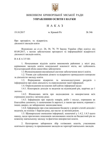 Про прозорість та відкритість діяльності закладів освіти