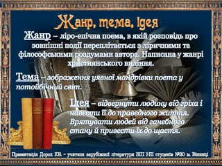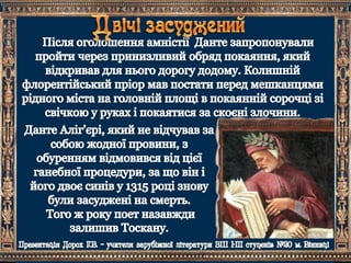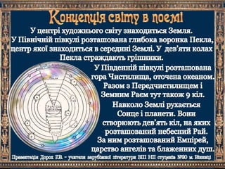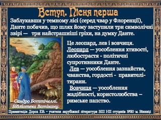 Документ описывает лимб, первый круг ада, в котором находятся некрещеные души, не уличенные в неправедных делах. Здесь обитают античные философы, поэты и праведники, такие как Ной, Моисей и Авраам, которые не могли вознестись в рай до определенного момента. Хранителем этого места является Харон, а наказание для его обитателей заключается в безболезненной скорби.