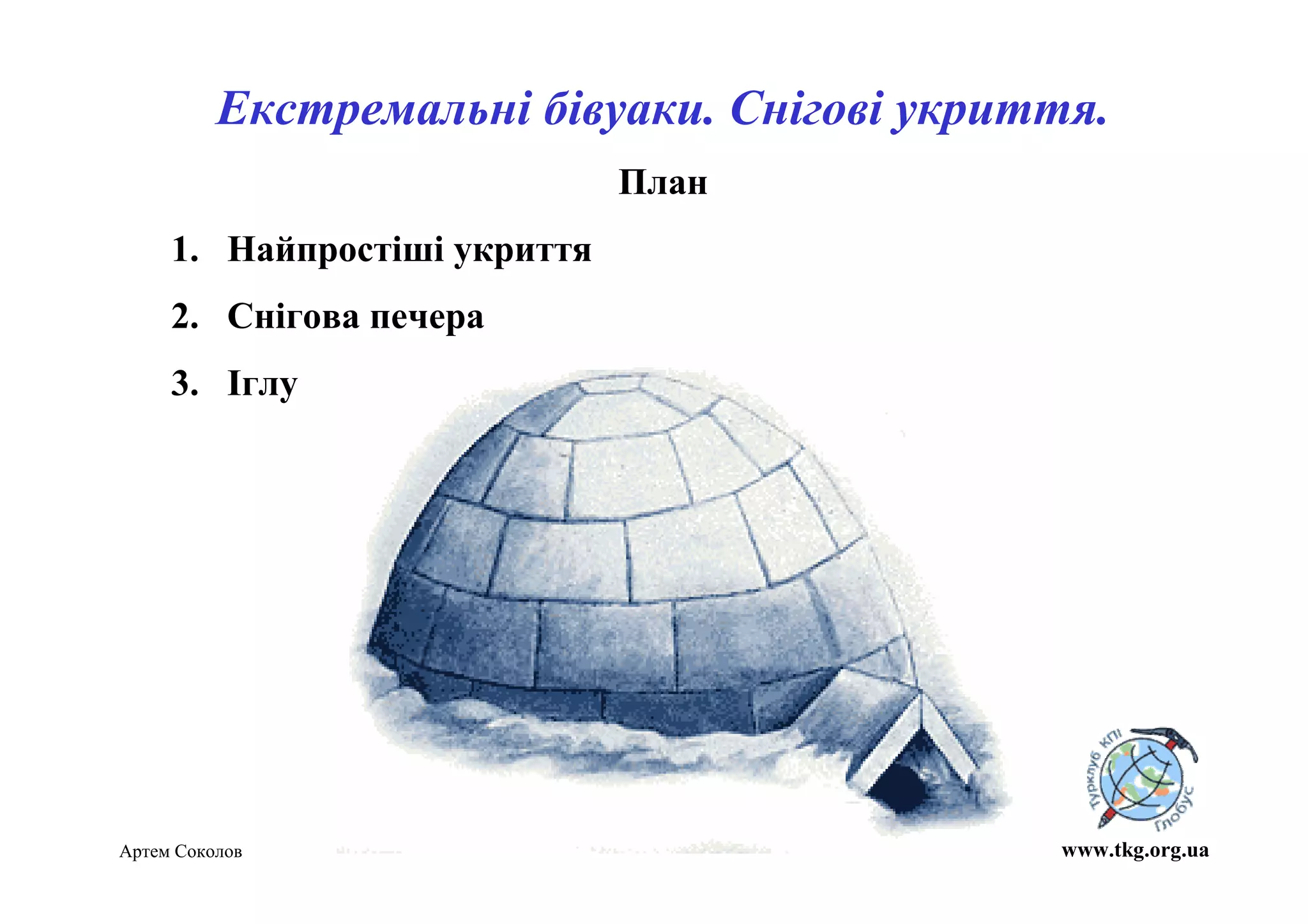 • Учбовий курс:4-5 іглу з різних типів снігу