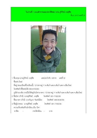 ใบงาน แบบสำรวจและประวัติของ นาย ปราชญ์สิทธิวงค์