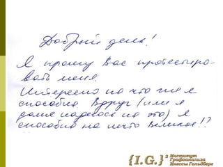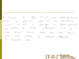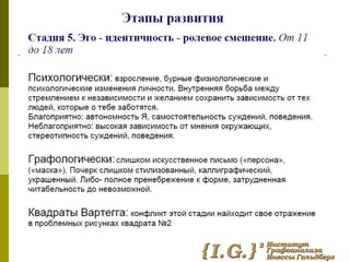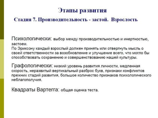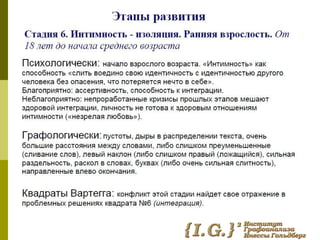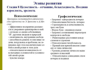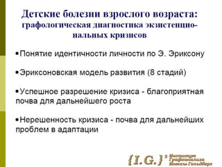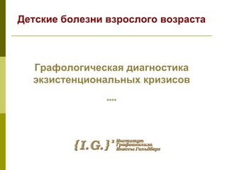 Документ обсуждает влияние детских болезней на взрослую жизнь и их связь с экзистенциальными кризисами. Он также рассматривает графологическую диагностику как метод анализа личностных особенностей, связанных с этими переживаниями. Темы взаимосвязи детства и взросления подчеркиваются через призму психологической теории.