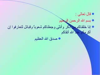 يتناول المستند أهمية التعارف في برامج التدريب وكيفية تهيئة بيئة تعليمية مناسبة للمشاركين، حيث يشمل استخدام وسائل مثل عملية إذابة الجليد لتعزيز التواصل بين المتدرّبين. يقدم أيضًا نموذج جوهاري لتحليل العلاقات والتواصل الفعّال من خلال تحديد أربعة مناطق لفهم الذات وتفاعل الأفراد. كما يتحدث عن أهمية إرجاع الأثر وآثاره الإيجابية في تحسين تفاعل الأفراد داخل المجموعة.
