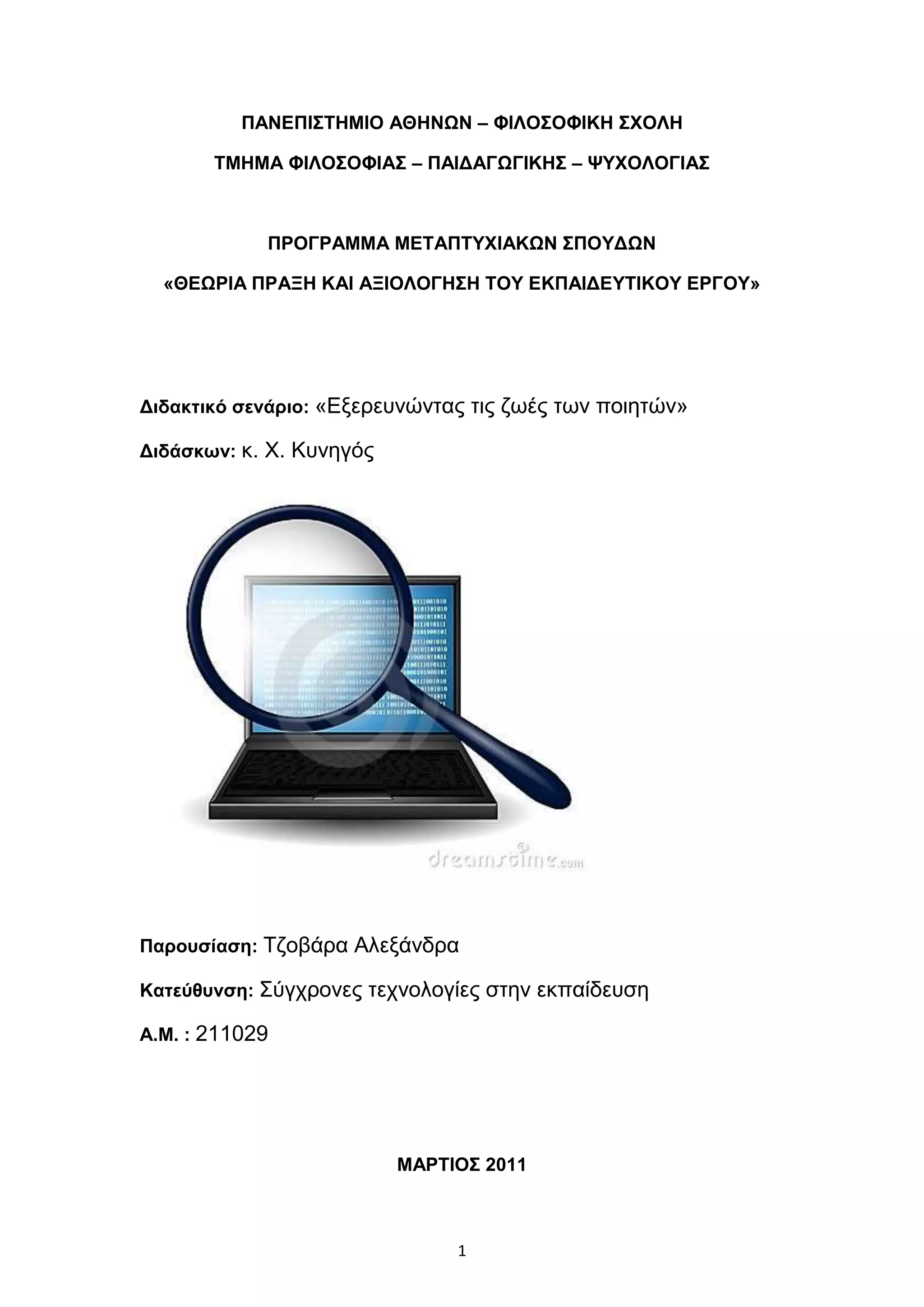 ppt.Διδακτικό σενάριο στη Νεοελληνική Λογοτεχνία:«Εξερευνώντας τις ζωές των π... PPTX
