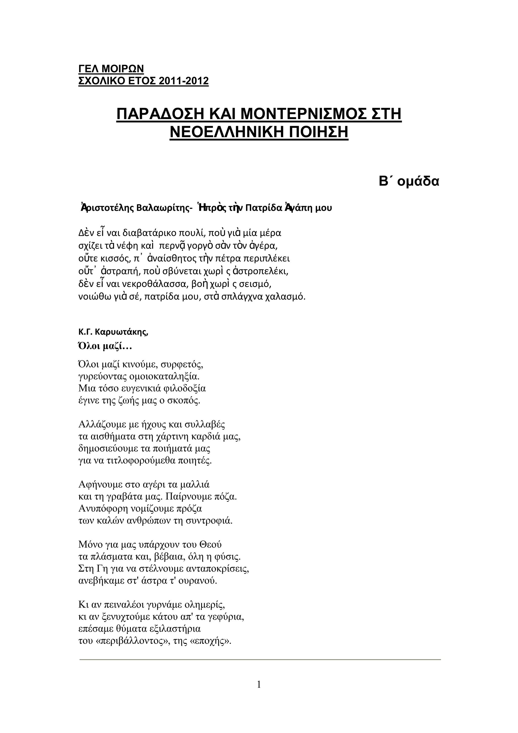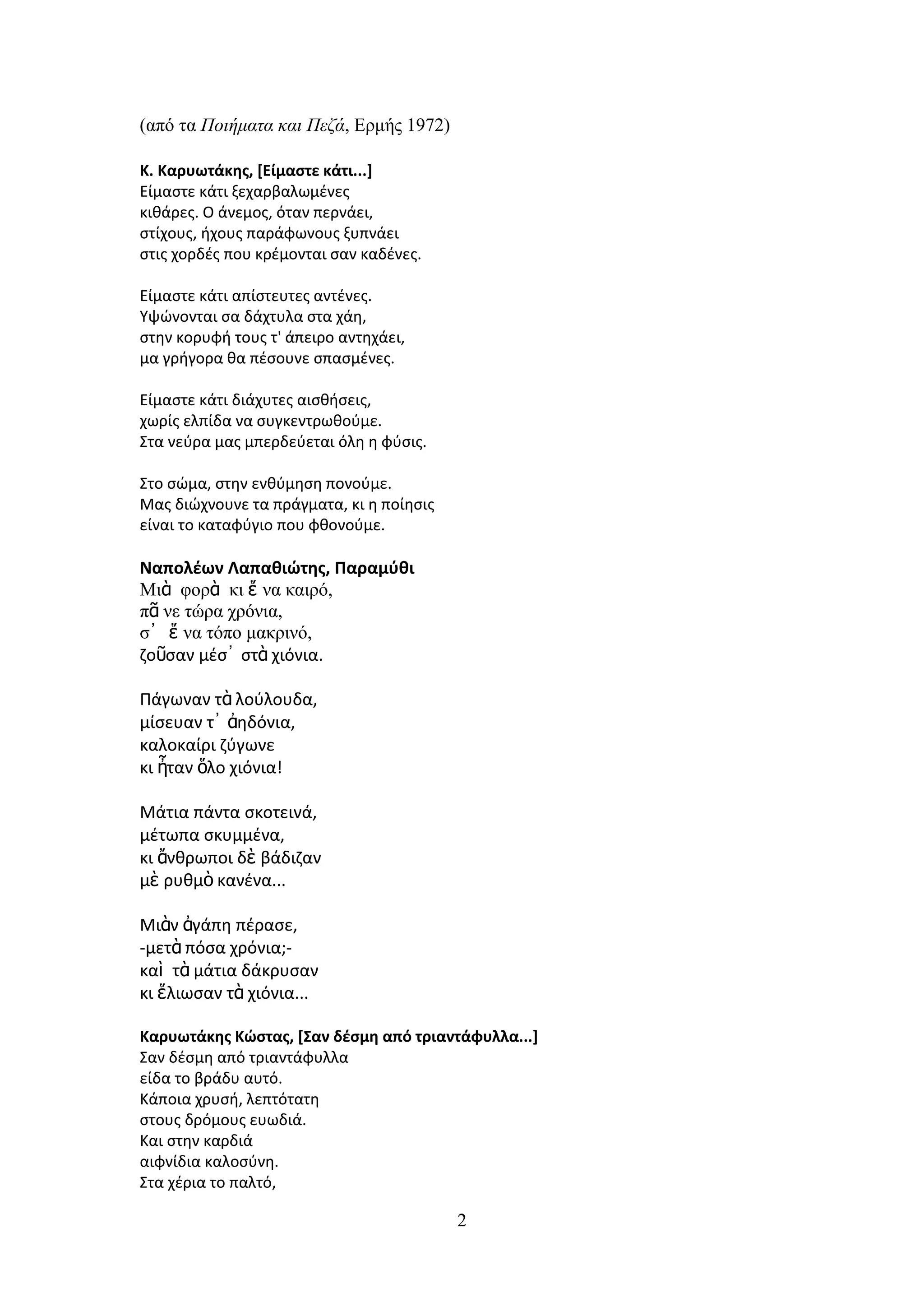 1. Να ςυγκρίνετε τα ποιιματα του Καρυωτάκθ με παραδοςιακά ποιιματα και