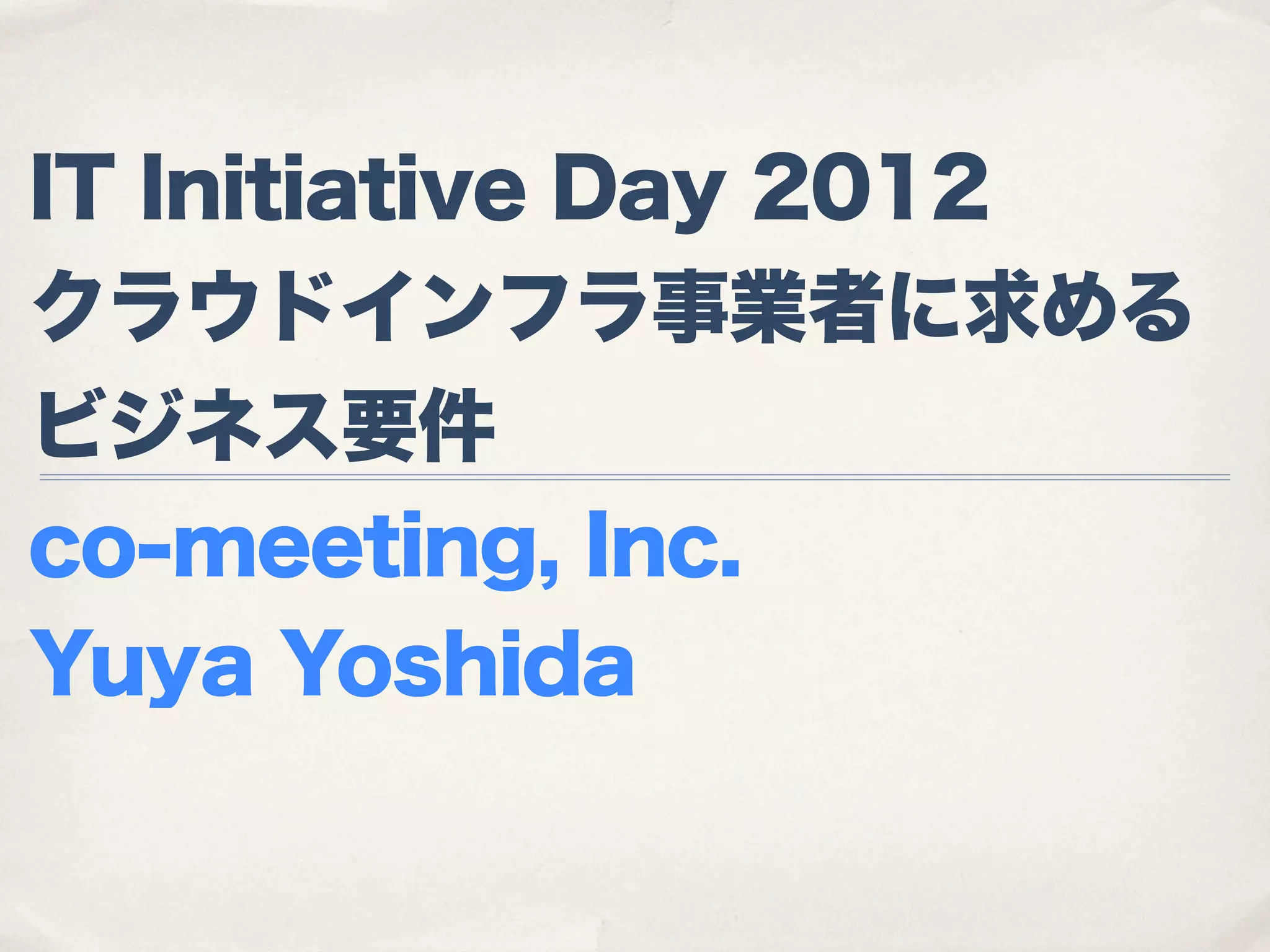 IT initiative Day 2012 特別講演 「情シス出身SasSスタートアップ企業が語る、クラウドインフラの事業者に求めるビジネス要件」 http://enterprisezine.jp/itiday/21/