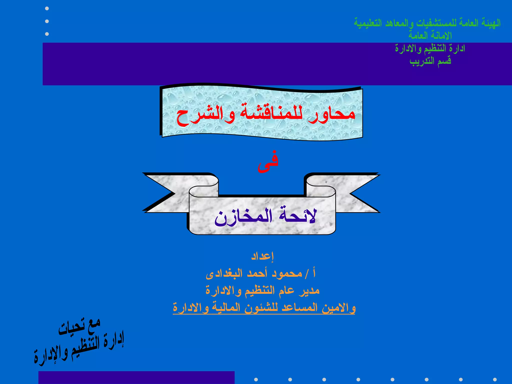 تتناول الوثيقة لائحة المخازن الحكومية، حيث تشمل موادها أحكامًا عامة تتعلق بإدارة المخازن، وواجبات موظفيها، وتفاصيل عن الدفاتر والاستمارات اللازمة لتسجيل الأصناف وإدارتها. كما تتطرق اللائحة إلى تصنيف وترقيم الأصناف لضمان التنظيم والكفاءة في التخزين والتوزيع. تشمل اللائحة أيضًا شروط التأمين على المخازن والاجراءات الواجب اتباعها لضمان سلامة المخزون وتسهيل الجرد.
