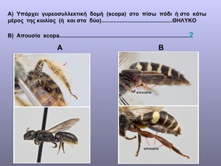 ΤΟ ΦΥΛΟ ΤΗΣ ΜΕΛΙΣΣΑΣ 1. 2. A) Υπάρχει γυρεοσυλλεκτική δομή (scopa) στο πίσω πόδι ή στο κάτω