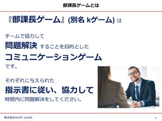 1 株式会社HEART QUAKE 報連相を駆使して問題解決せよ 部課長ゲーム