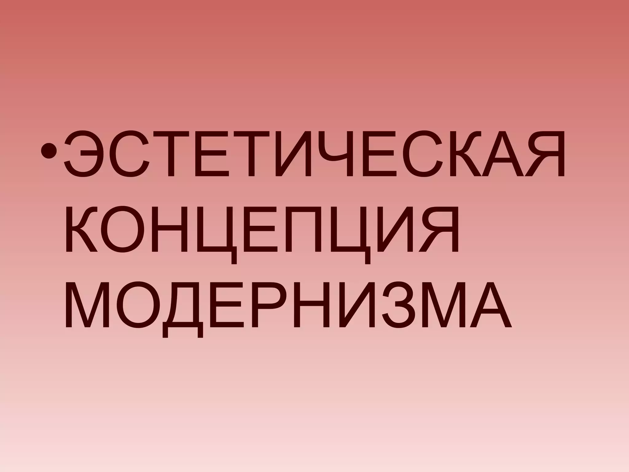 Документ обсуждает эстетическую концепцию модернизма, описывая его как отрицание традиционных форм в искусстве и литературе XX века. Модернизм, возникший накануне Первой мировой войны и достигший расцвета в 1920-х годах, стал интернациональным феноменом, соединяющим различные художественные школы, такие как имажизм и дадаизм. В произведениях модернистов подчеркивается ценность индивидуального творческого видения, а их философия отвергает классические традиции в пользу экспериментирования и новаторства.