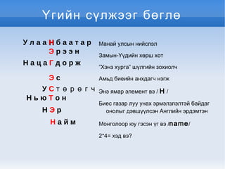 УСт ө р ө г ч Энэ ямар элемент вэ / Н /