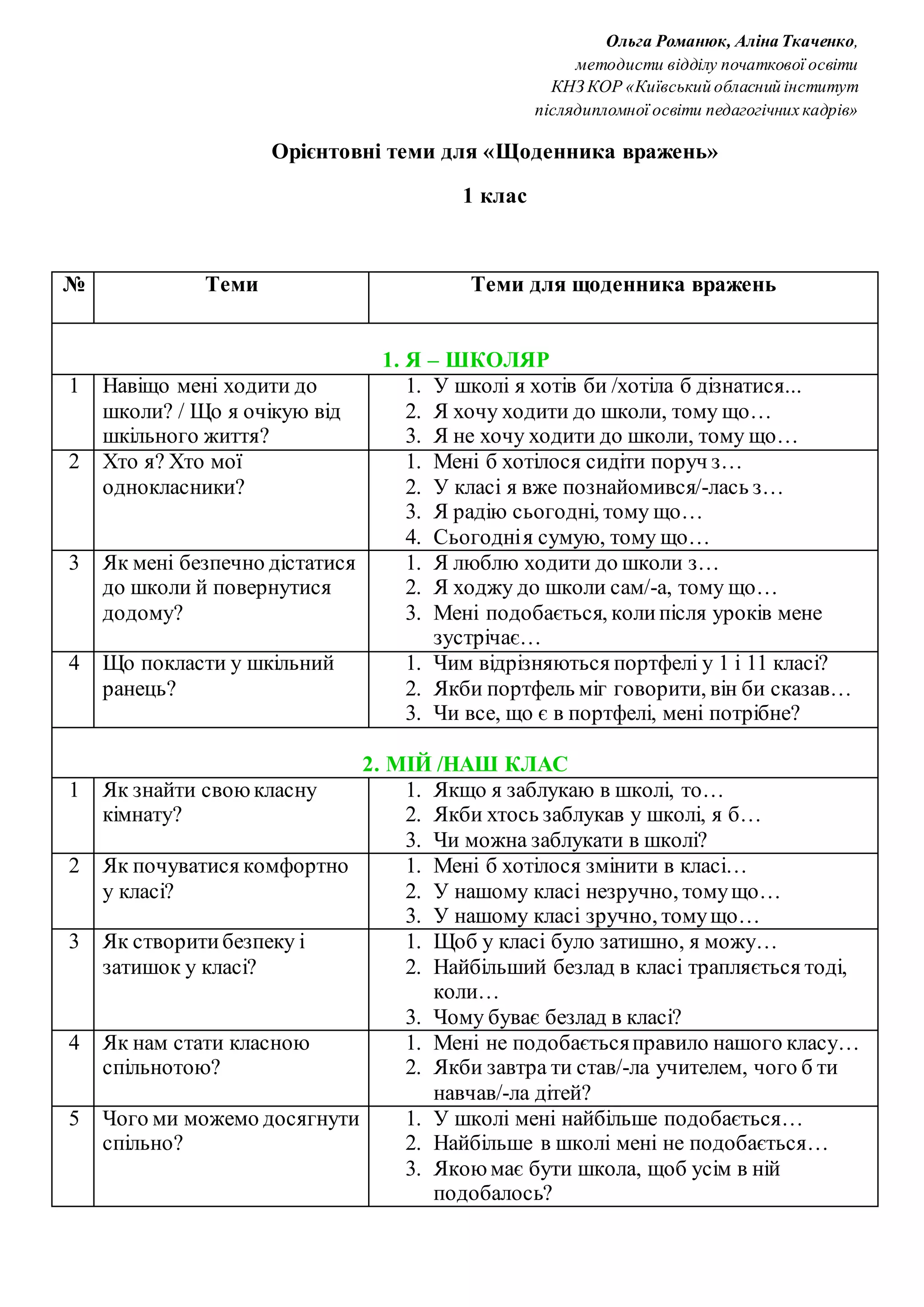 2. МІЙ /НАШ КЛАС