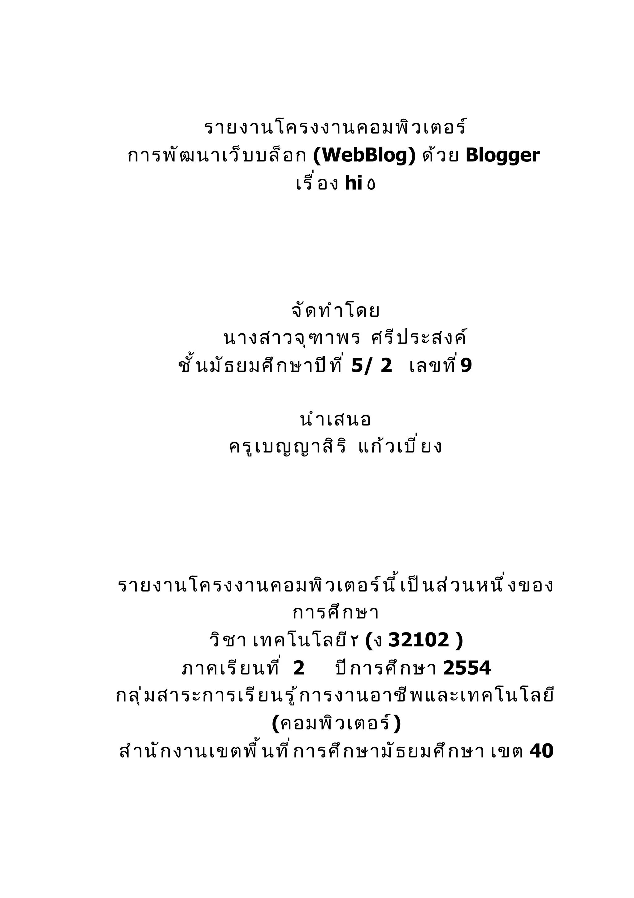 เรื่อง hi5 นี้ จัดทำาขึ้นโดยมีวัตถุประสงค์เพื่อนำาเอารูปแบบการ