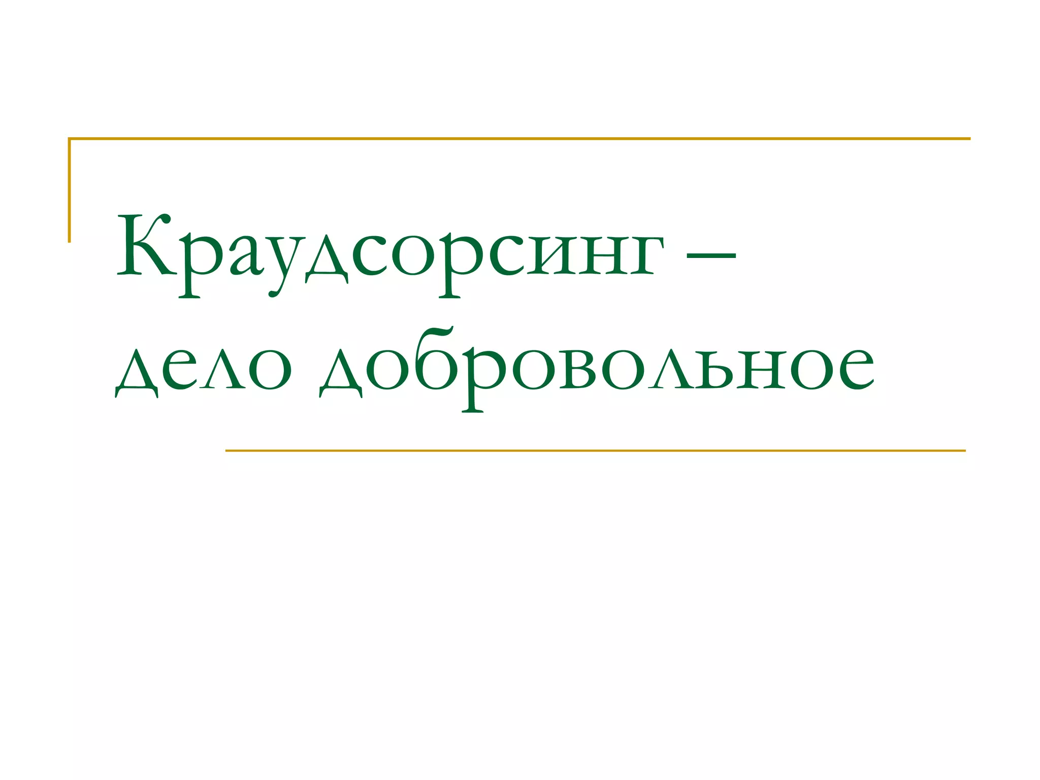 Краудсорсинг — это практика получения услуг и идей от большого числа людей, особенно онлайн, начиная с 2006 года. Существует несколько видов краудсорсинга, включая краудфинансирование и краудсоздание, которые позволяют участникам жертвовать временем ради морального удовлетворения. Тем не менее, краудсорсинг имеет свои недостатки, такие как отсутствие гарантий качества и низкий уровень коллективного интеллекта.