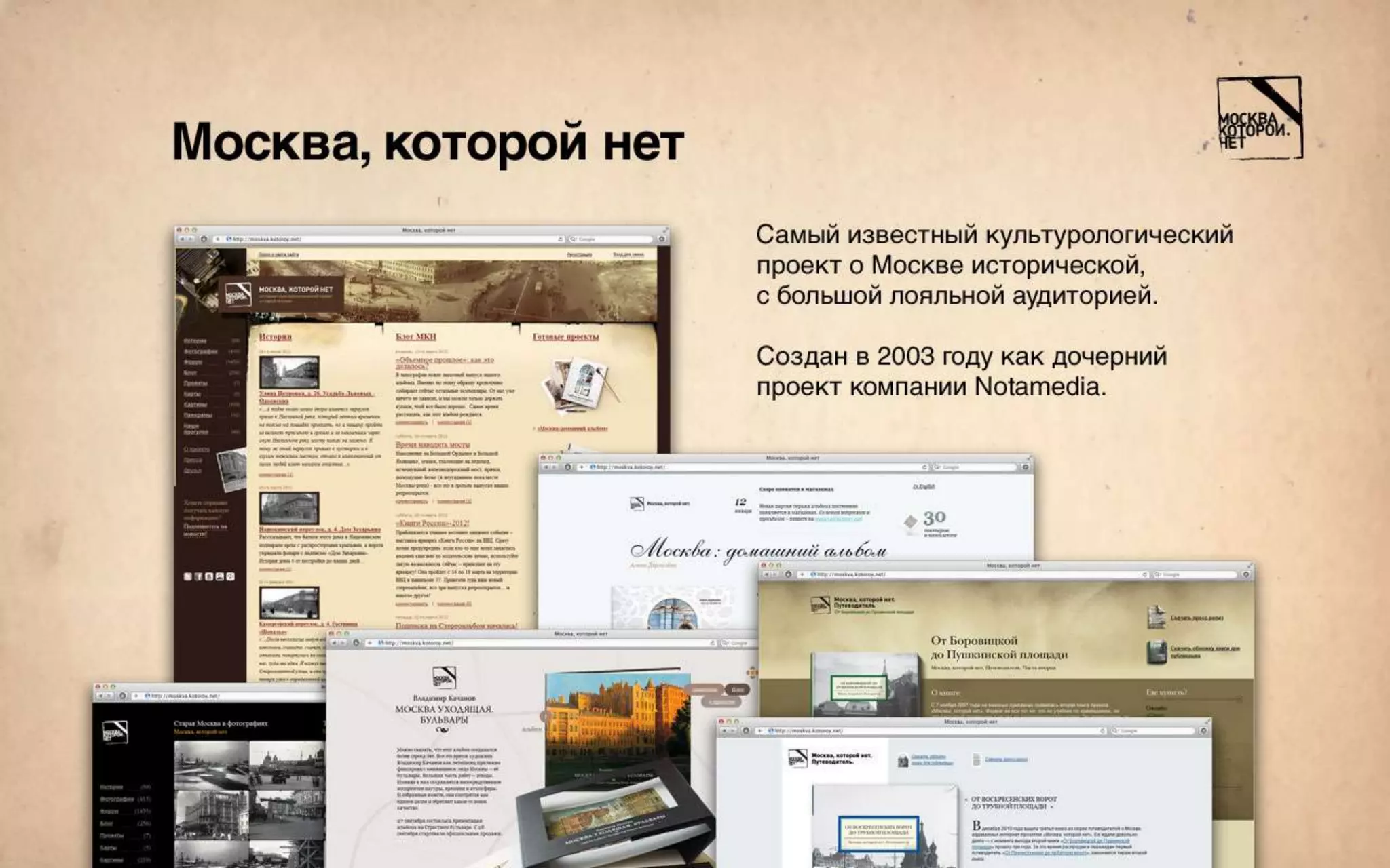 Проект «Москва, которой нет» о городе, о старых московских домах — о тех, что есть, и о тех, которых уже нет.