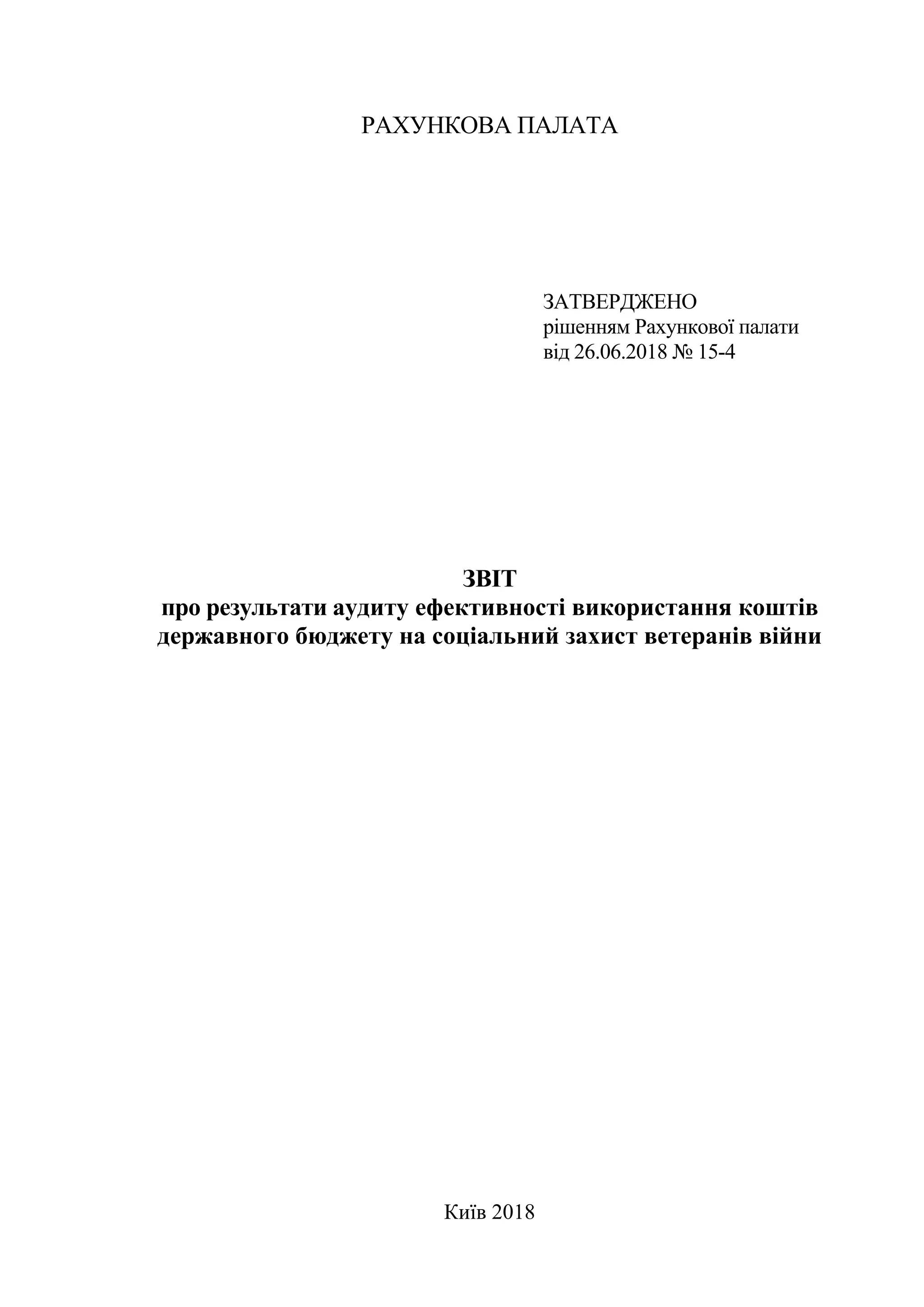 Звіт про результати аудиту ефективності використання коштів державного бюджету на соціальний захист ветеранів війни