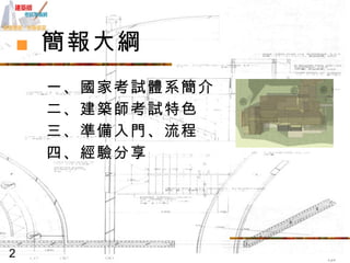 文档讨论了国家考试体系,尤其是公务员及建筑师考试的准备与经验。提供了考试科目、流程、考试特点和准备技巧等重要信息,并强调努力和积极态度对通过考试的重要性。包含考生的经验分享和成功的关键要素,旨在帮助考生提升通过考试的机会。