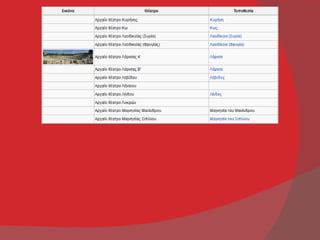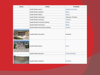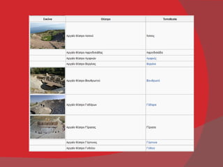 Ακολουθεί πίνακας αρχαίωνθεάτρων που έχουν καταγραφεί ως σωζόμενα ή και