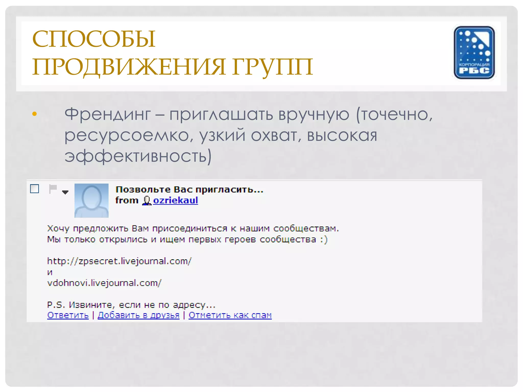 Документ описывает различные методы продвижения групп в социальных сетях, включая бесплатные и платные способы, такие как френдинг, посев и таргетированная реклама. Также рассматриваются основные термины, связанные с рекламой, такие как CPC, CPM и CTR, и их влияние на эффективность объявлений. Кроме того, документ предлагает услуги по продвижению персон и брендов в социальных сетях с указанием цен на различные пакеты услуг.