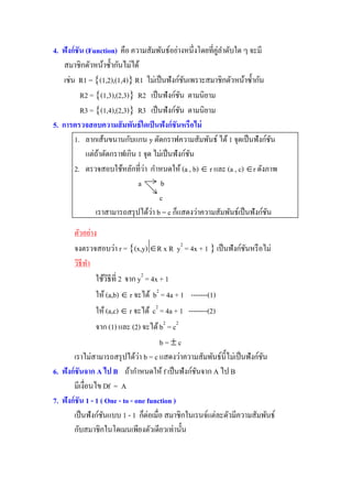 จงตรวจสอบว่า r = (x,y) R x R y2 = 4x + 1 เป็ นฟังก์ชนหรื อไม่