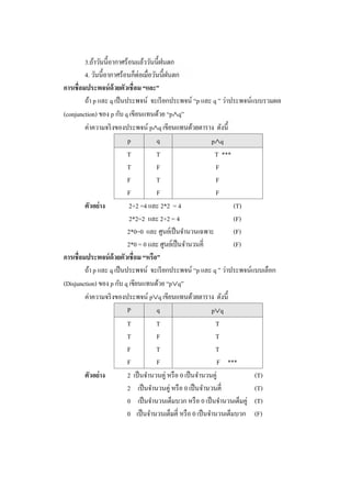 ค่าความจริ งของประพจน์ pq