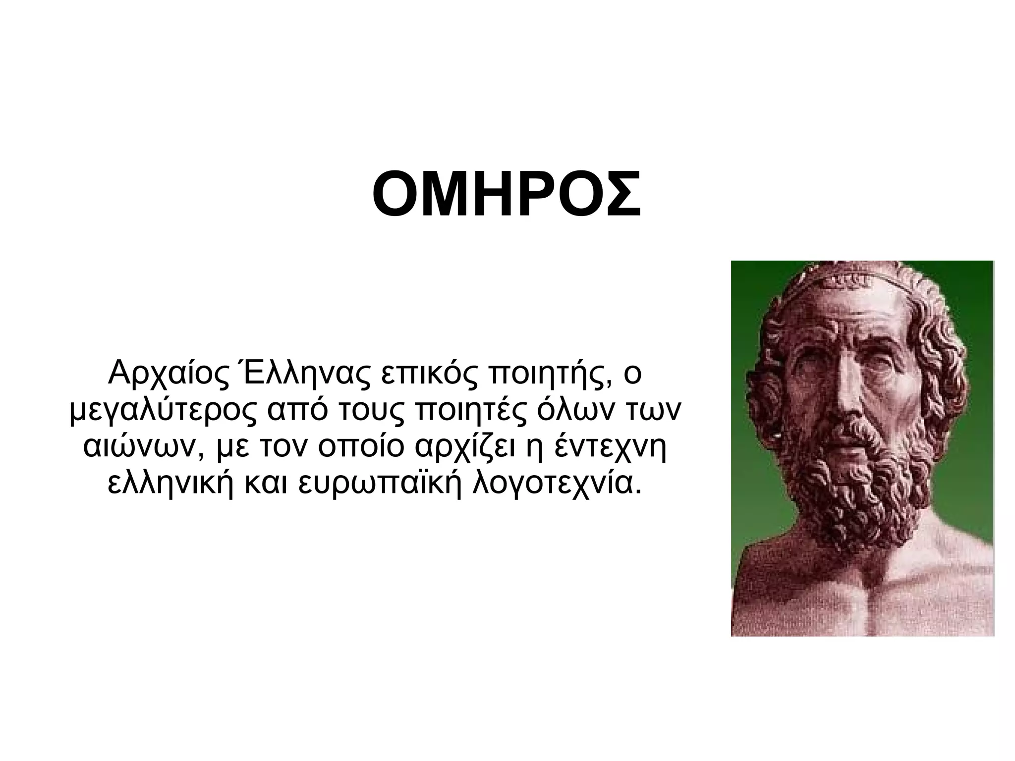• Ο Όμηρος. έγραψε: την Ιλιάδα