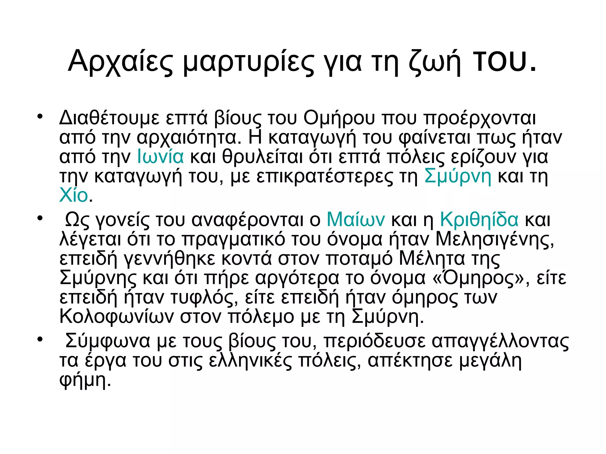από την Ιωνία και θρυλείται ότι επτά πόλεις ερίζουν για