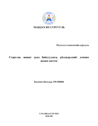 технологийн сургууль Старт-ап, жижиг дунд байгууллага, үйлдвэрллийг дэмжих цахим систем Батмөнх Билгүүн, SW18D004 УЛААНБААТАР ХОТ 2018 ОН