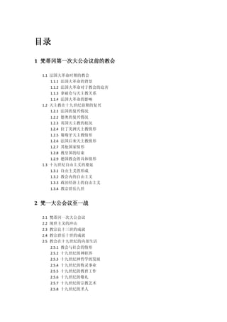 文档讨论了梵蒂冈第一次大公会议前的教会历史,重点描述了法国大革命对教会的影响和迫害。教会不仅面临着财产被没收的威胁,还遭受了来自革命政府的严重打压,特别是在恐怖统治期间。最后,尽管教会受到重创,然而许多信徒仍坚持信仰并抵抗迫害。