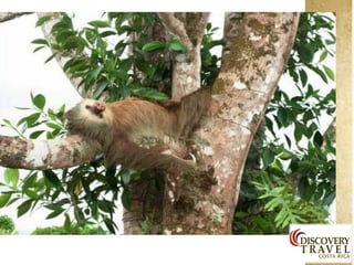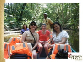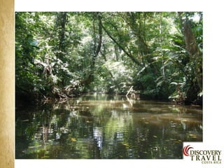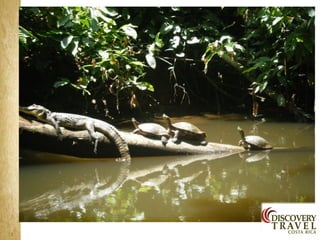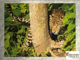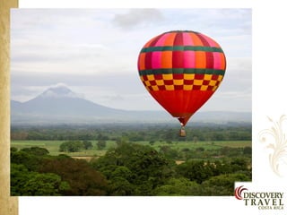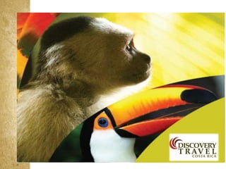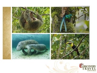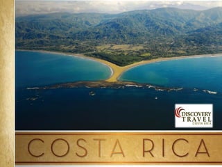 Costa Rica is a country with a diversity of landscapes and climates, including rainforests, volcanoes, and beaches. It has a tropical climate with wet and dry seasons. Some of the main attractions highlighted in the document include the country's natural parks which cover 25% of the land and are home to diverse wildlife, as well as the beaches on the Caribbean and Pacific coasts. The document provides information on the country's culture, traditions, and tourist areas to visit such as Arenal, Monteverde, Manuel Antonio, and hotels recommended in each region.