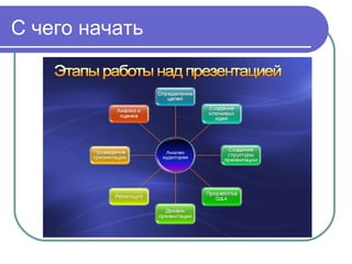 Документ содержит рекомендации по созданию эффективных презентаций, начиная от подготовки и определения целей до визуального оформления и взаимодействия с аудиторией. В нем описаны ключевые характеристики успешного докладчика, принципы запоминаемости, а также шаги для структурирования и управления презентацией. Уделяется внимание важности первого впечатления и методам удержания внимания слушателей.
