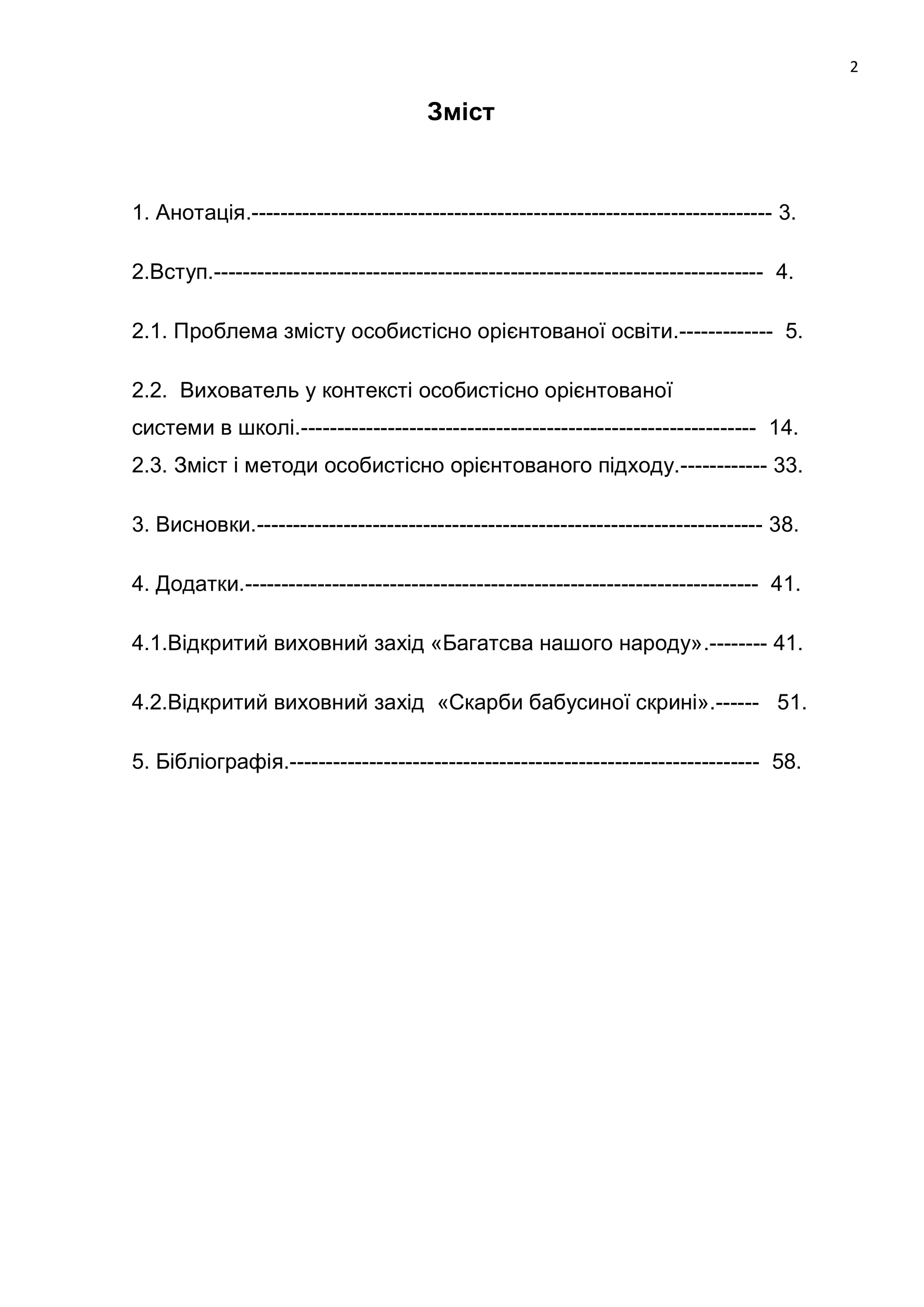 2.3. Зміст і методи особистісно орієнтованого підходу.------------ 33.