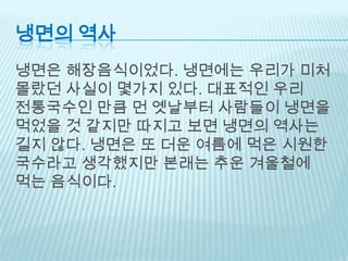 냉면은 해장음식이었다.냉면에는 우리가 미처