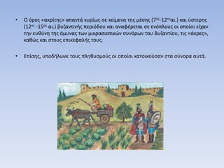 (12ος -15ος αι.) βυζαντινής περιόδου και αναφέρεται σε ενόπλους οι οποίοι είχαν